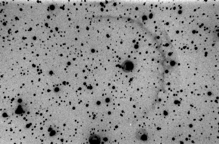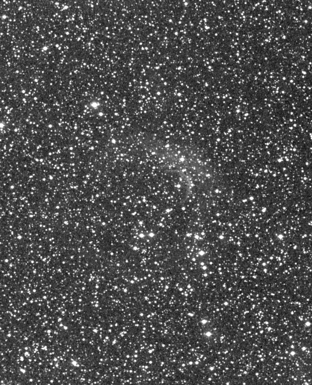 Newton, Bortle 4-5, 36fache Vergrößerung, Gesichtsfeld 1°8 bei 9 mm AP. Unmittelbar NNO der Katalogposition N-S längliches, 10'x3'Filament |