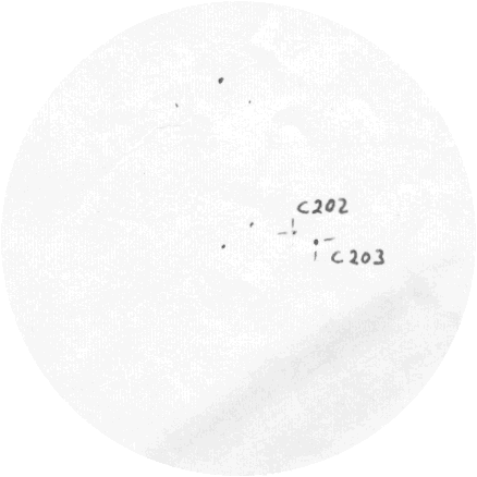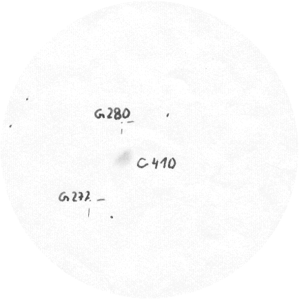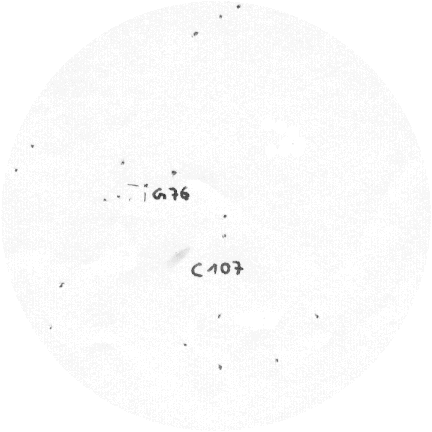 76 und C 107 bei 160facher Vergrößerung. Felddurchmesser 24 Bogenminuten C 259 in A 29 2,3‘ nordöstlich des Kugelsternhaufens G