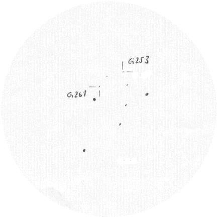 253 und der benachbarte Kugelsternhaufen G 261 bei 321facher Vergrößerung.